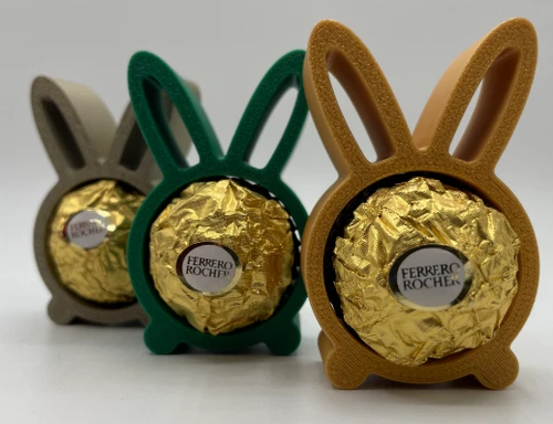 Celebrate Easter in style with this 3D Printed Ferrero Rocher Bunny Holder, a charming and functional way to display your favorite chocolate treats. Designed as a whimsical bunny, this holder perfectly cradles a Ferrero Rocher chocolate, transforming a simple candy into a festive decorative piece for your holiday table, basket, or gift.