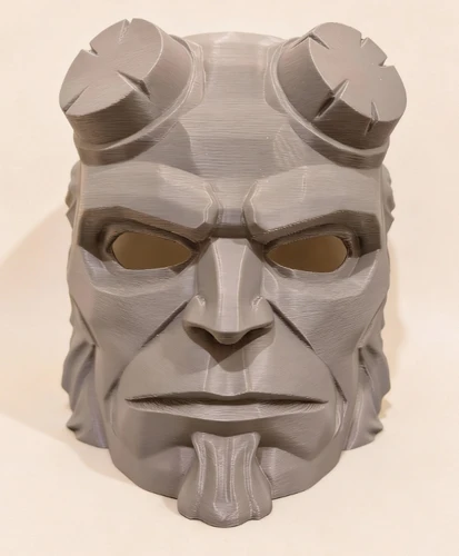 - Hyper-Detailed "Stone" Texture: Advanced 3D layering replicates the craggy, weathered brow and heavy jawline characteristic of Hellboy’s demonic physiology.