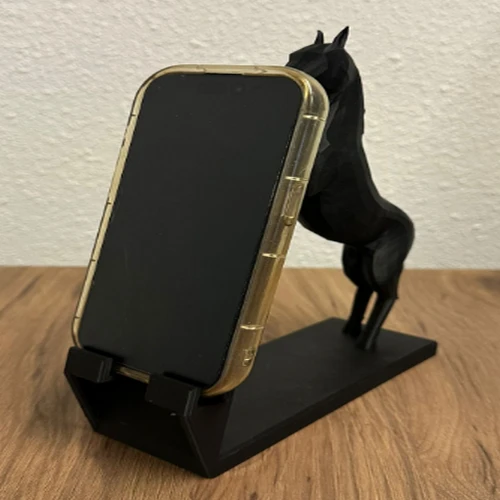 Bring a touch of power and elegance to your workspace with this 3D Printed Rearing Horse Phone Stand. Blending artistic sculpture with modern utility, this stand features a dynamic silhouette of a horse in mid-stride, designed to hold your device securely while making a bold visual statement.