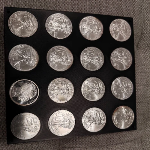 Printed using high-quality filament, this holder offers a lightweight yet sturdy construction with a smooth finish that complements your collection without distracting from it. Ideal for display shelves, desks, safes, or trade shows, it keeps your coins protected from scratches and clutter while presenting them in a clean, professional layout.