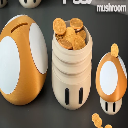 - 🎨 Individually customizable: Print the mushroom in your favorite colors – making each piggy bank unique.