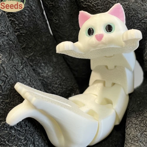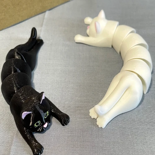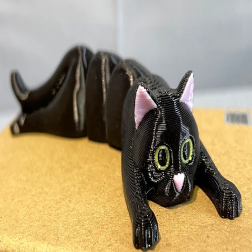 Capture the heartwarming "pick me up" pose of a favorite feline with the Flexi-Holding Cat. This 3D-printed companion features a specialized articulated design that mimics the soft, floppy way a real cat drapes across your hands or shoulder. With its paws outstretched and a fluid, multi-jointed spine, this cat is designed to "hold on" to edges, fingers, or computer monitors.