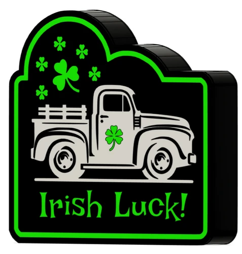 Celebrate St. Patrick’s Day in style with this 3D Printed St. Patrick’s Day Truck “Irish Luck!” Light Box. Featuring a festive truck design carrying shamrocks and the cheerful “Irish Luck!” message, this piece adds a playful and charming touch to your holiday décor. The precision 3D printing process creates crisp details and layered texture, making the design visually striking whether displayed on a shelf, mantel, or tabletop.