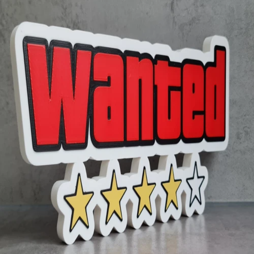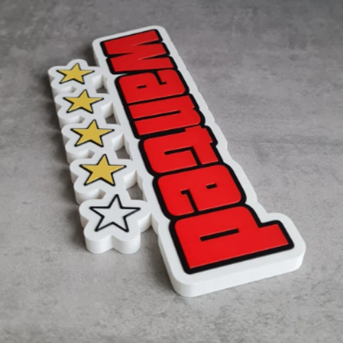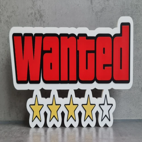 Bring a touch of outlaw attitude to your setup with this 3D Printed Wanted GTA Logo / Sign, inspired by the iconic style of the Grand Theft Auto series. Designed for fans of open-world chaos and classic crime-game aesthetics, this bold sign captures the unmistakable “Wanted” look that instantly stands out in any room.